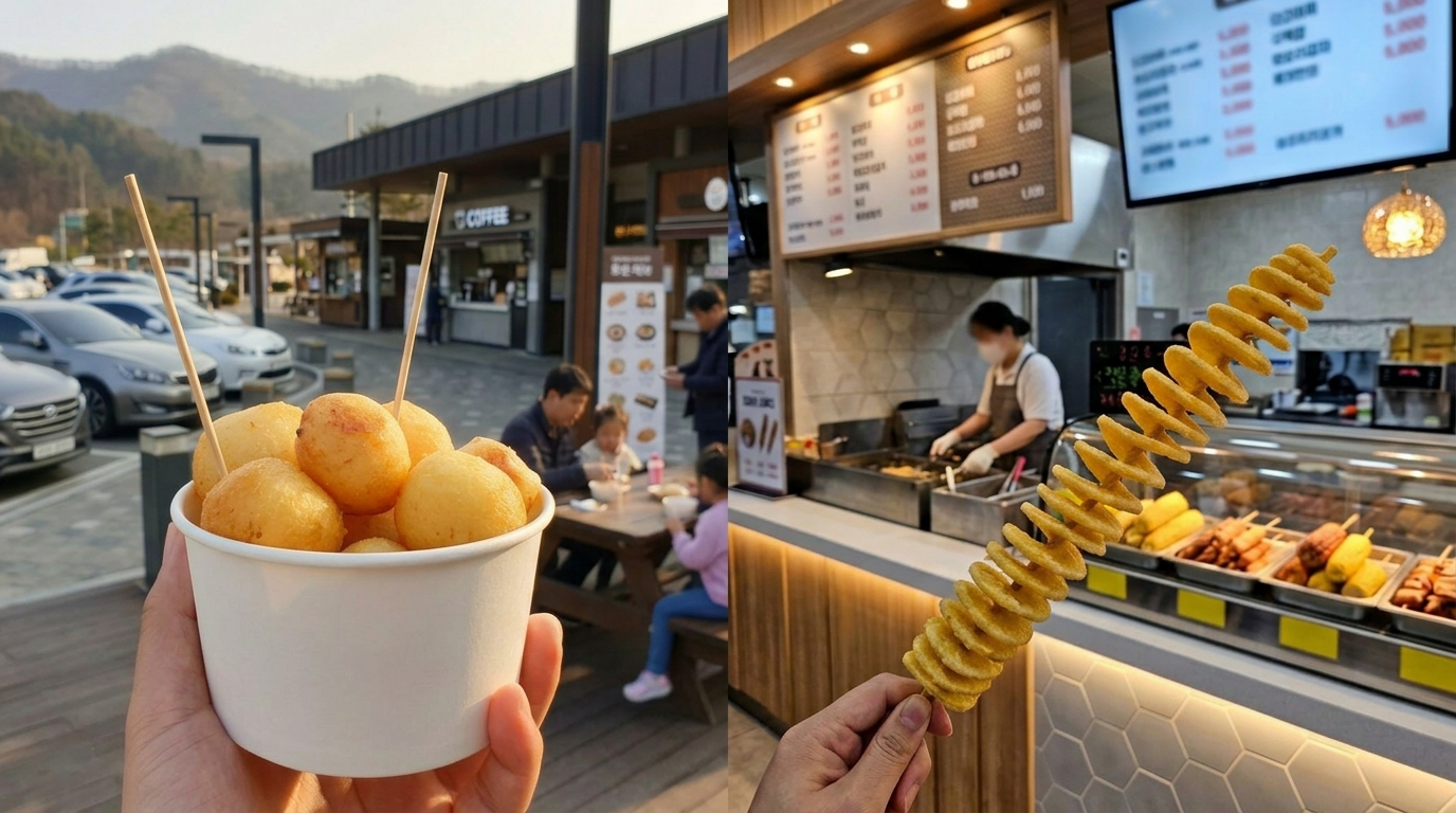 In Korea, a long drive isn't complete without pulling over at a Hyugeso (휴게소)—the local highway rest area. It’s not just a place to fuel up; it’s where travelers go to stretch their legs, grab a quick bite, and enjoy a bit of variety before heading back to the road.