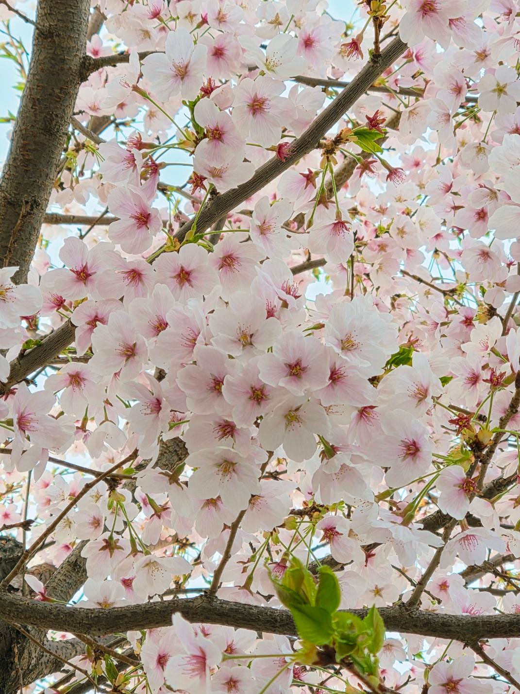 One of the most striking observations is the color of the Cherry Blossoms. Many have noticed they appeared surprisingly pale—almost a ghostly white—when they first opened. This is because the sudden heat forced them to bloom before they could produce enough anthocyanin, the natural pigment responsible for that iconic pink hue. Now that they’ve had some sun and time on the branch, they’re finally filling up with color, almost as if they’re finishing their makeup after the show has already started.