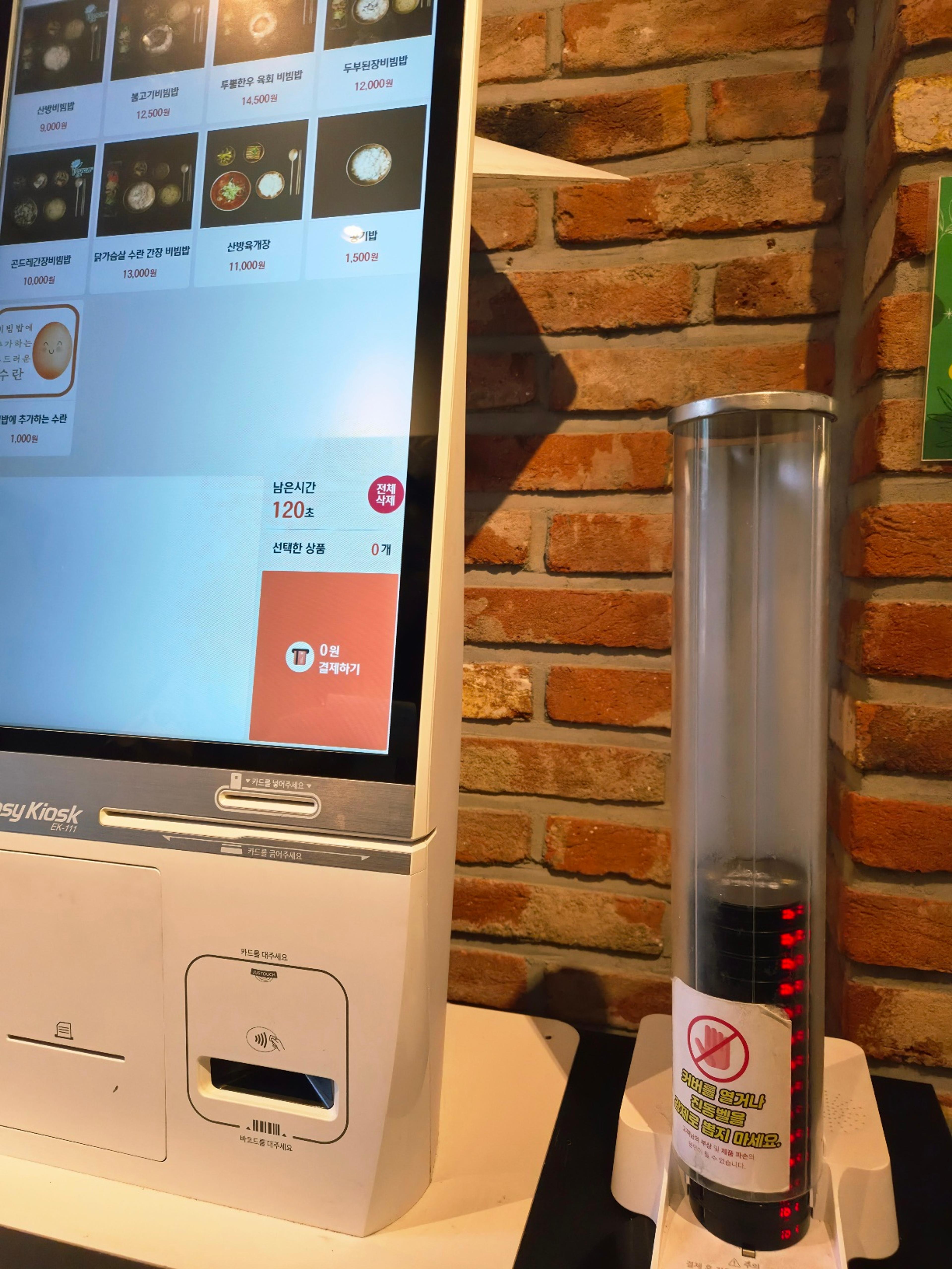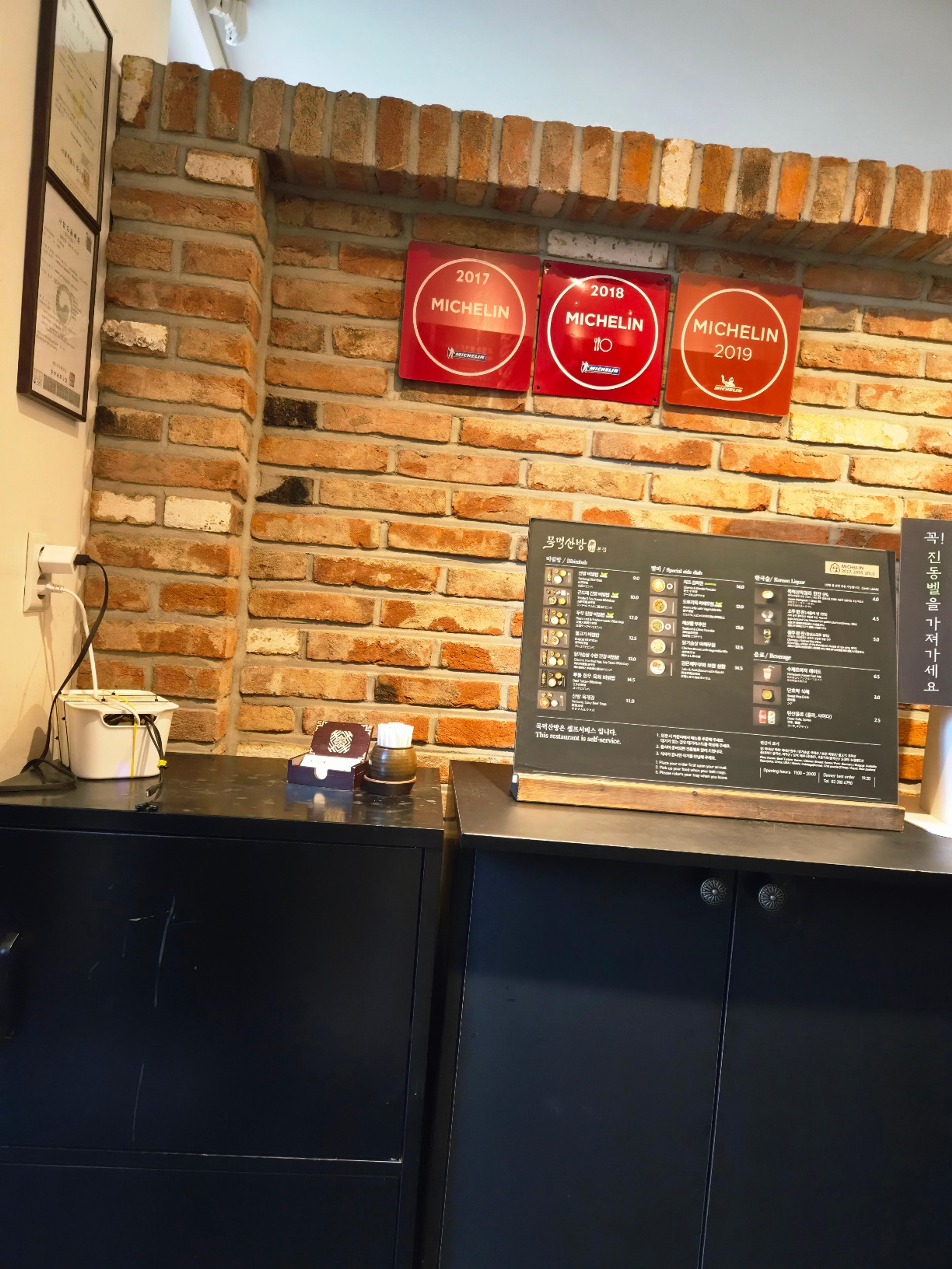 The restaurant operates with a modern self-service system. Upon entry, guests place orders via a kiosk. The interior design pays homage to its heritage, featuring a storytelling wall that details the origin of its name—Mokmyeok, the ancient name for Namsan Mountain—and its commitment to high-quality, locally sourced ingredients.