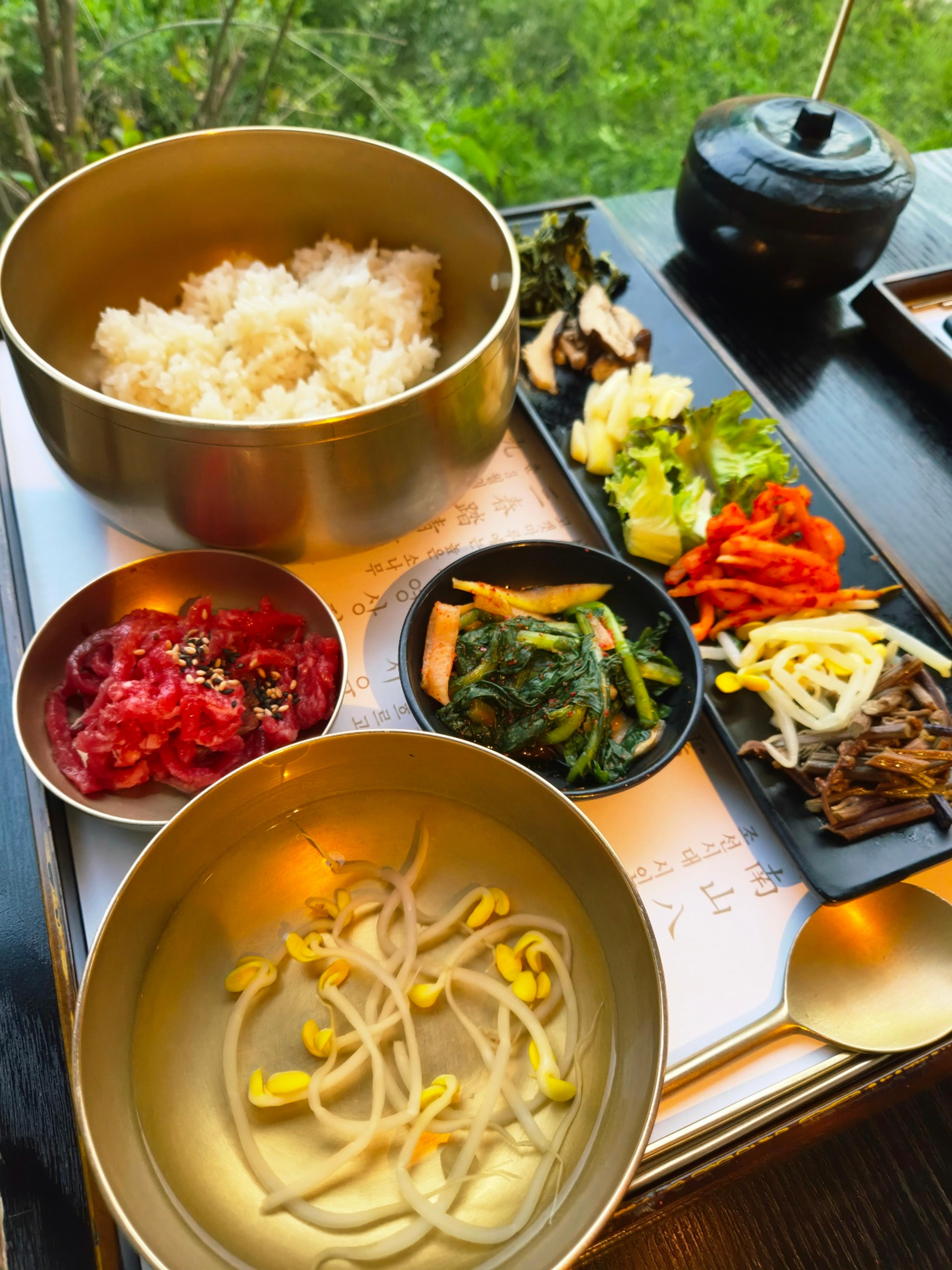 During this visit, I had the chance to try both the Yukhoe (Beef Tartare) Bibimbap and the Poached Egg & Chicken Breast Soy Sauce Bibimbap. I have to say—both were absolutely fantastic. The freshness of the ingredients really shines through in every bite. But if there’s one thing you absolutely cannot miss, it’s the Seafood Scallion Pancake. The texture and flavor are simply out of this world!