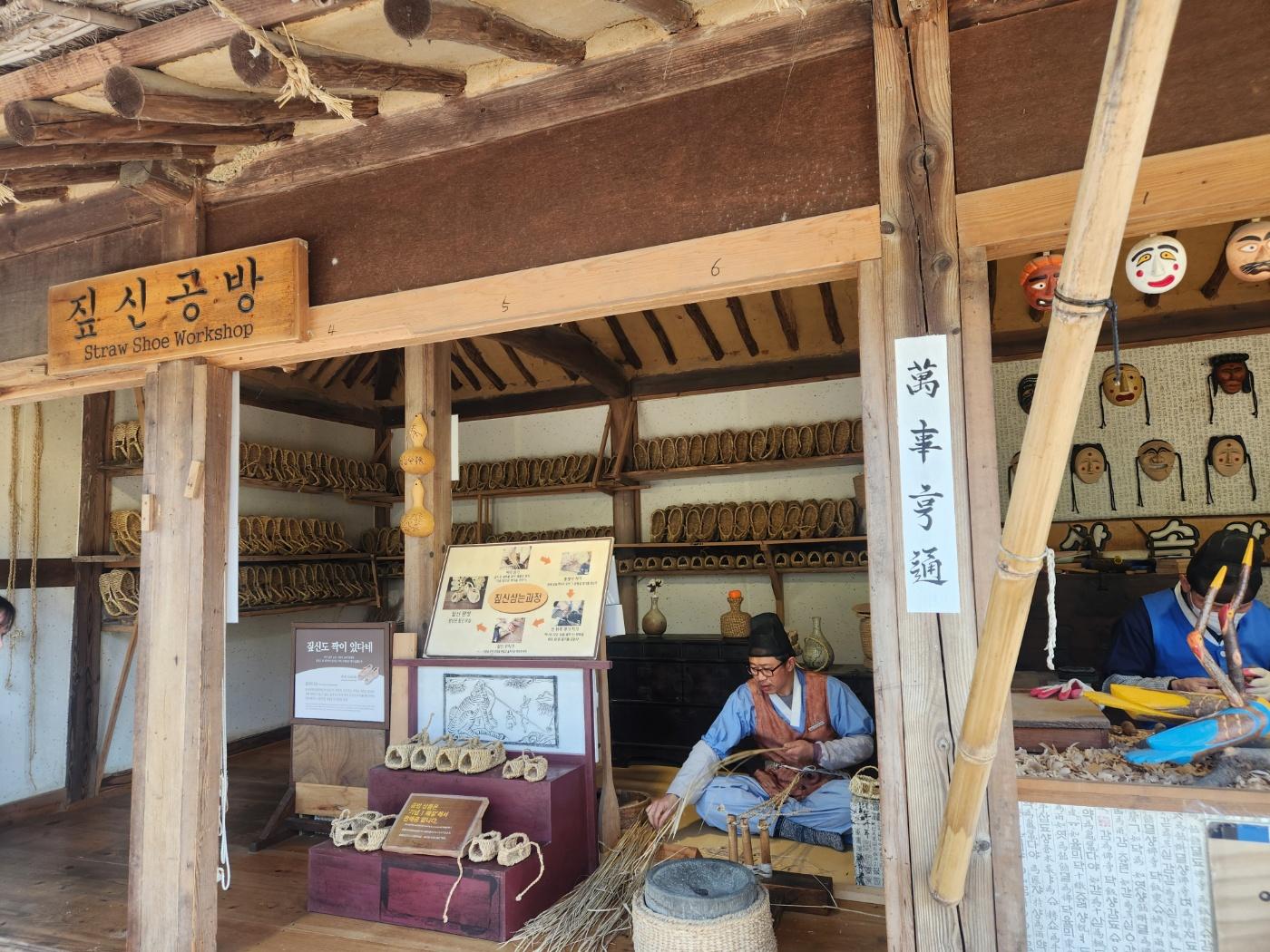 I saw a craftsman weaving traditional straw shoes (Jipsin), a fan-making workshop getting ready for the summer heat, and even a blacksmith hammering hot iron over a roaring fire. You can’t get this kind of raw, real-life energy from a textbook or an AI-generated image. This is the real, continuing life of Korea. Seeing that little kid staring in total awe at the blacksmith's forge was just too cute!