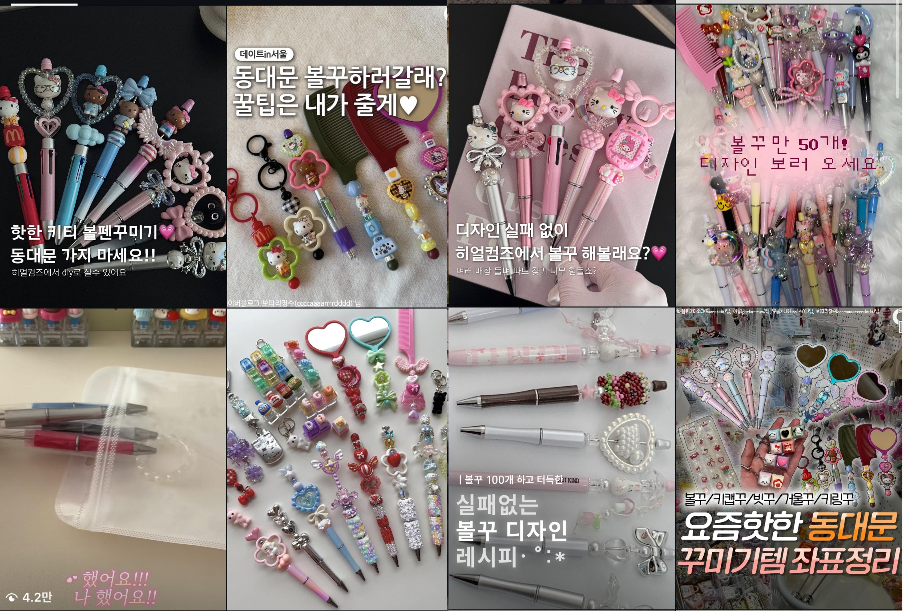 One of the most popular trends right now is “Bol-Kku,” short for ballpoint pen decorating. The idea is simple: take a basic pen and customize it using beads, miniature charms, chains, and colorful decorative parts.