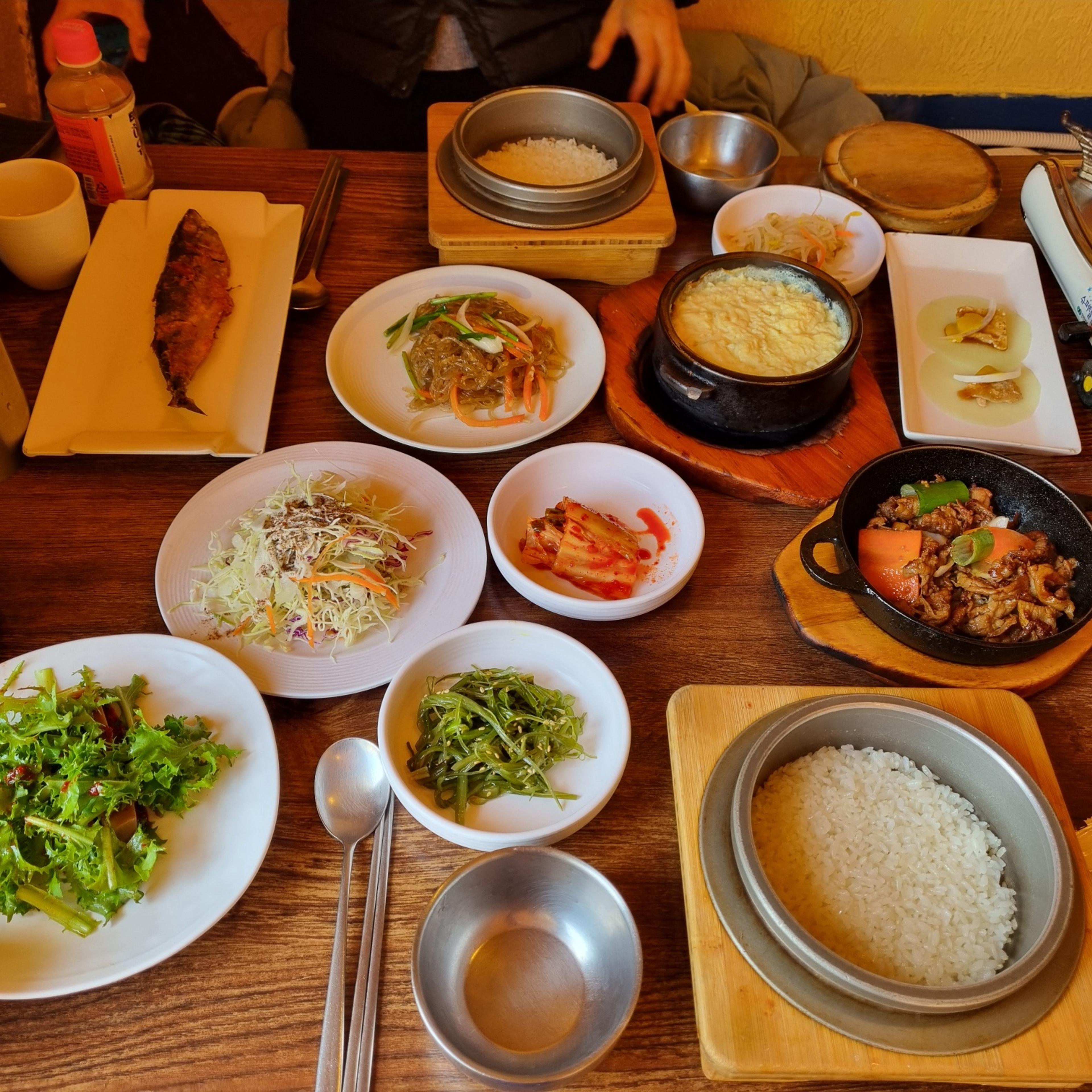 The true beauty of Sot-bap, however, begins after you’ve scooped the rice into a separate bowl. This is where the meal transforms. You’ll notice a golden, toasted crust clinging to the bottom of the pot—this is Nurungji (scorched rice). Instead of scraping it off, you pour hot water over it and replace the lid. While you enjoy your main course, a nutty, soul-soothing transformation takes place inside the pot.